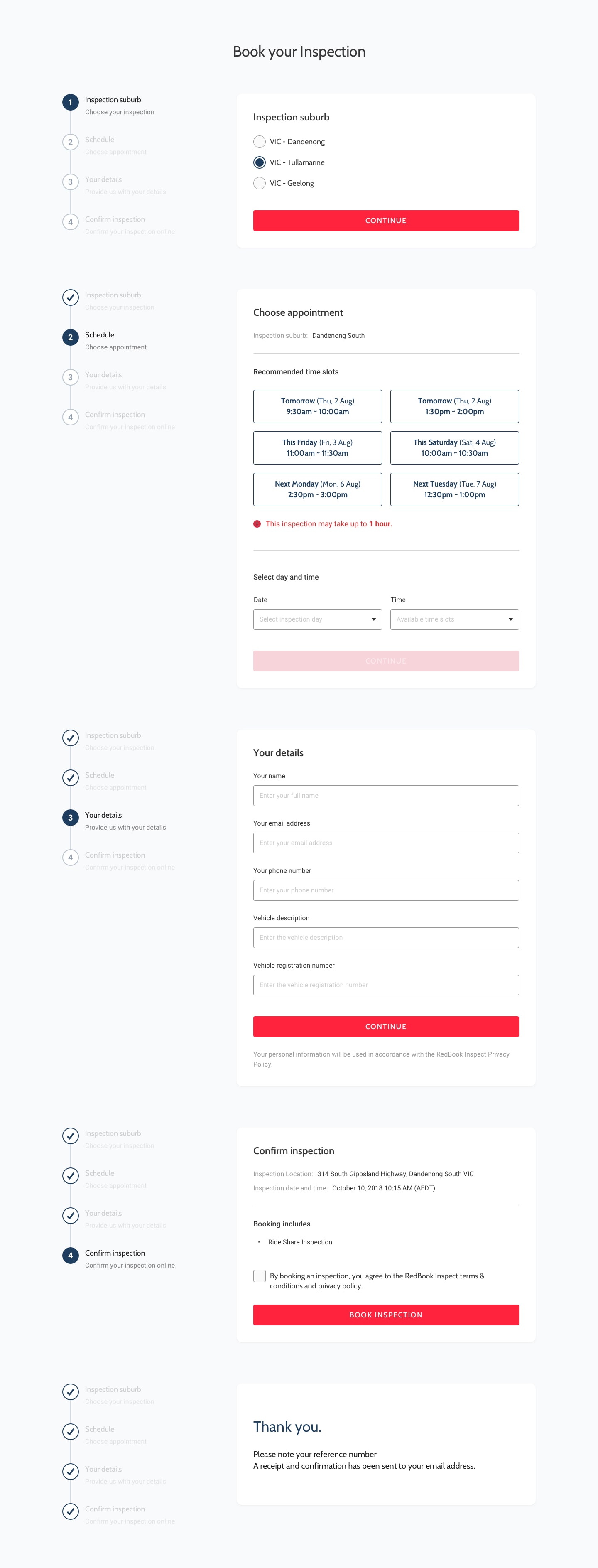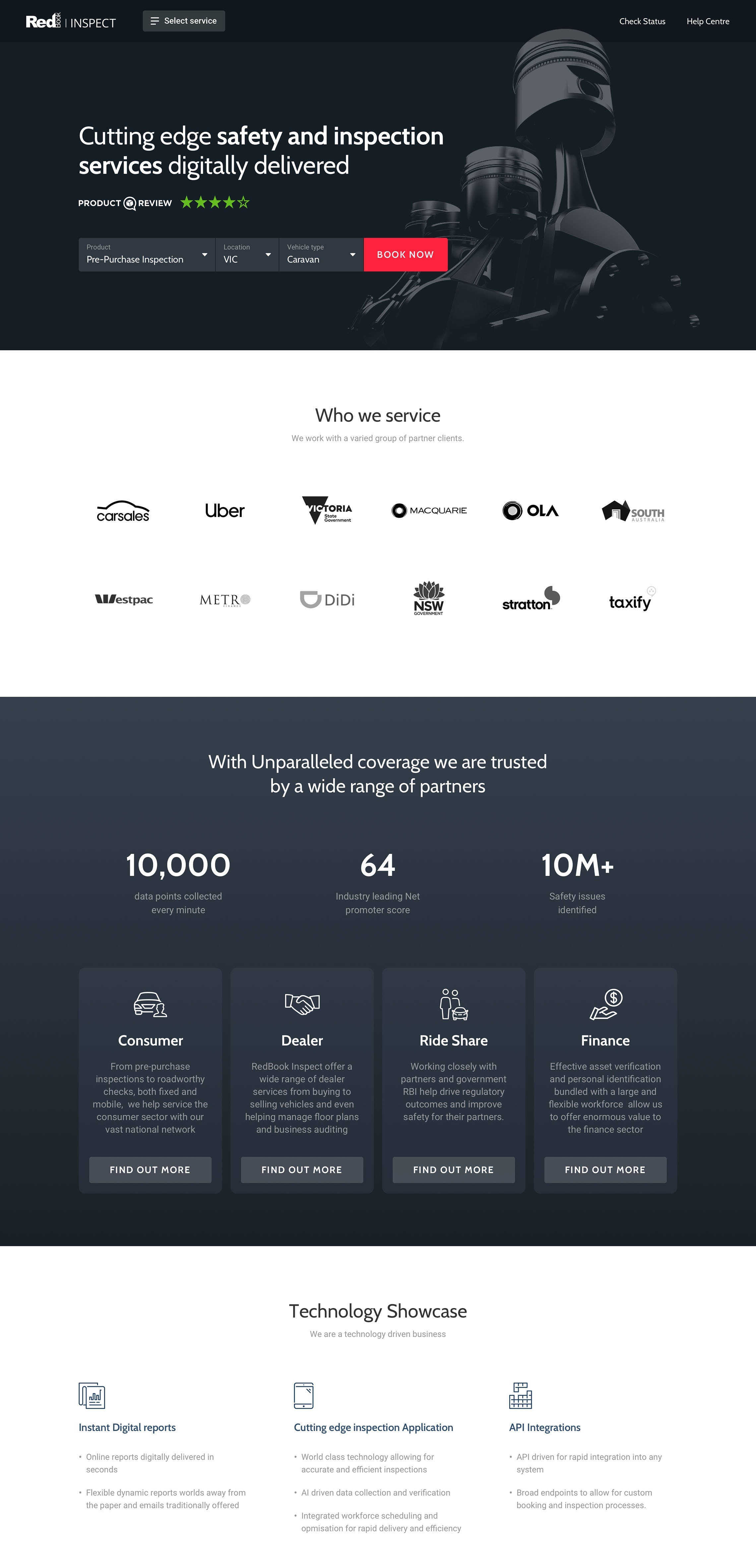 RedBook Inspect is a vehicle inspection service by Carsales. They provide an inspection service, not only to individual customers, but to car dealers and finance companies. Also, a big part of the business is roadworthy inspection for drivers of ride-share services such as Uber, Ola and Didi.