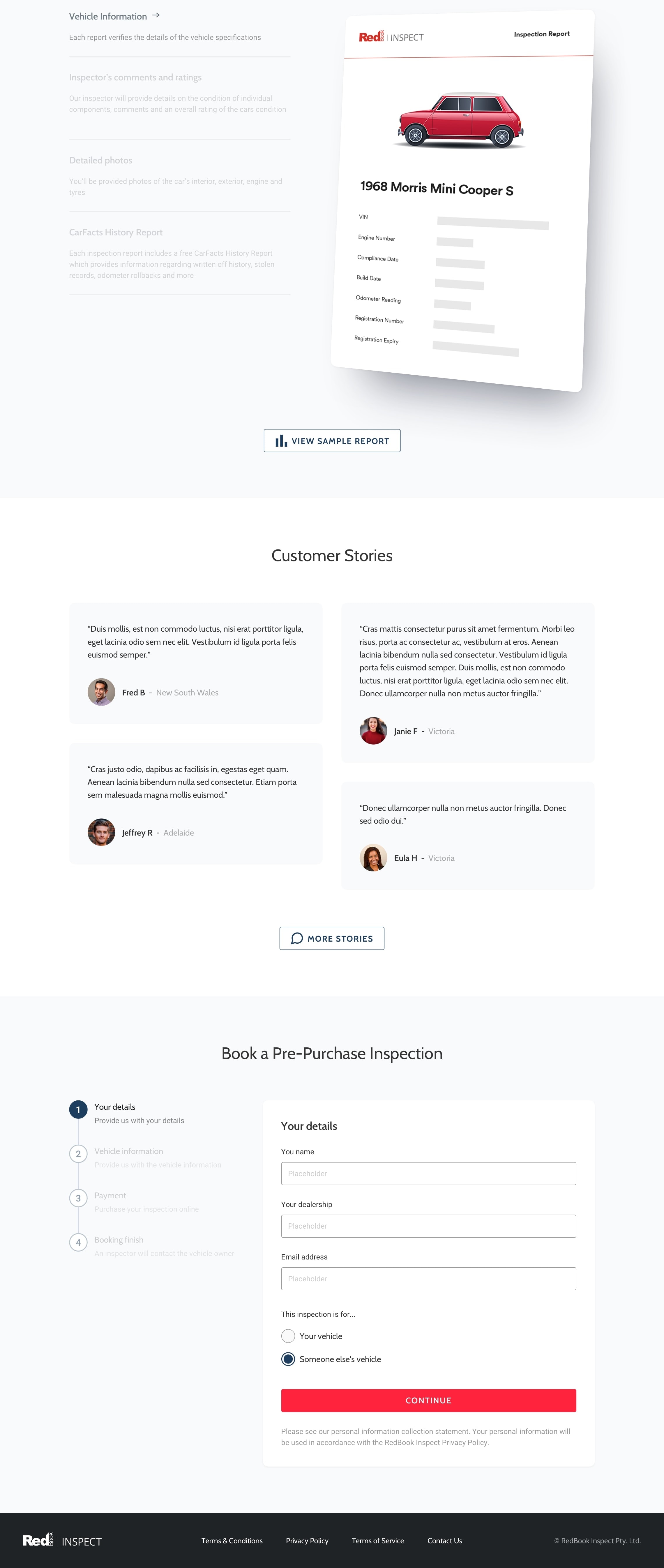 One of my main projects at the RedBook Inspect team was to redesign its website. I was given enough flexibility in terms of brand and style constraints, and that was very helpful for me to think more freely without worrying too much about boundaries.